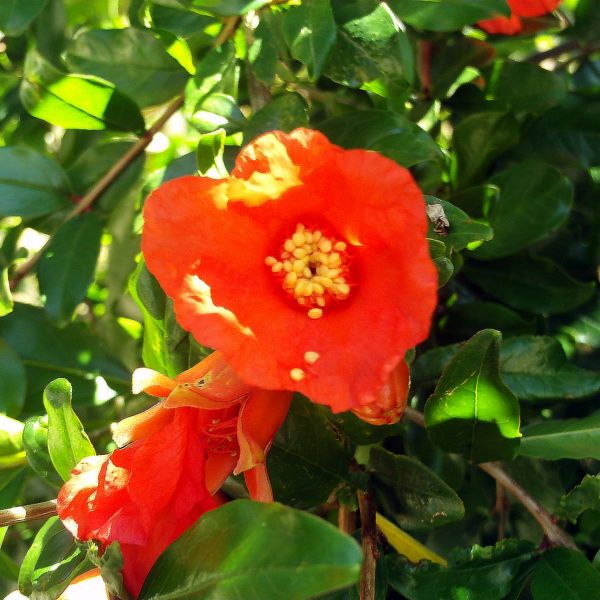 In the spring, Parfianka Pomegranate will enchant you with its delicate, trumpet-shaped red blossoms that will continue into the long summer months, providing welcome allure for butterflies. Parfianka is also a hummingbird magnet with its showy red flowers.