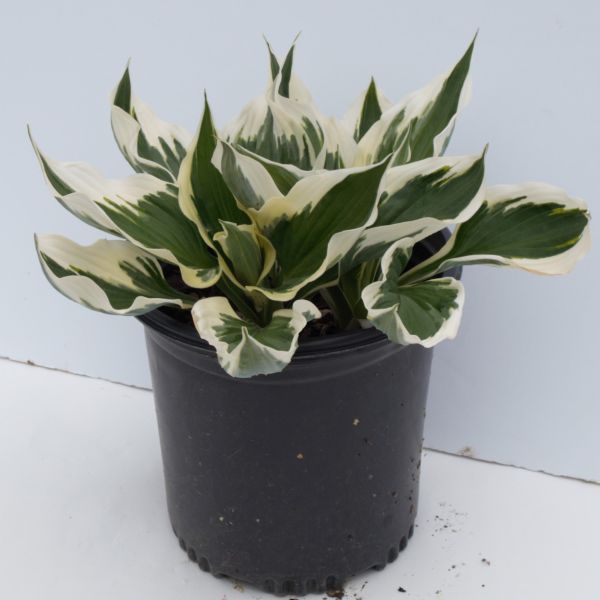 The Hosta ‘Patriot’, Hosta fortunei, has heart-shaped, glossy medium green leaves with a large white margin, making this variety very striking!
