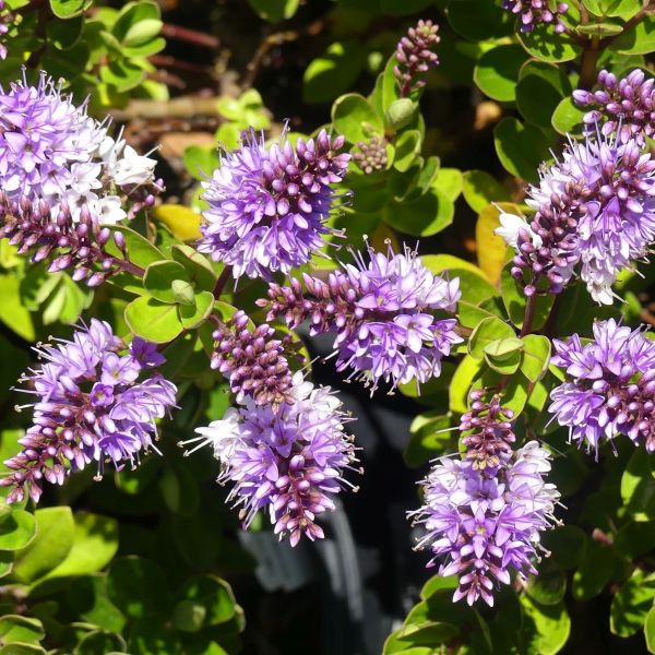 Patty’s Purple Hebe thrives in warm Zones, taking on the same basic shape seen in the timeless boxwood shrub. This beautiful shrub is a bit of a sun worshiper, it loves hot, hot sun, but it also likes a little shade too, much like its boxwood counterparts. Use it as a border or hedge, or pot the Patty’s Purple Hebe in containers for a more formal look on the patio, deck or porch.
