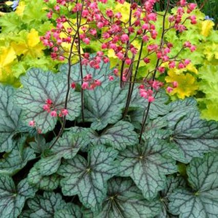 Coral Bells Peppermint Spice, Heuchera ‘Peppermint Spice’, looks especially good around the edge of borders, near variegated plants, woodland edges, rock gardens, perennial borders, or in mass to form an attractive ground cover.