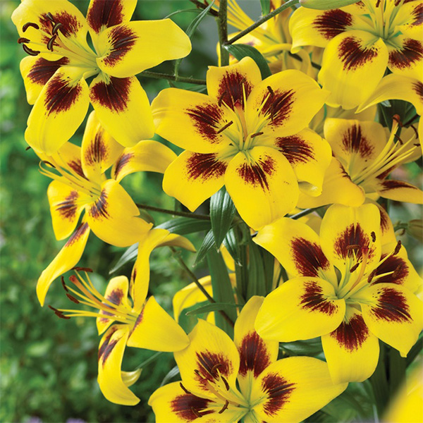 This pie in the sky lily variety will make you believe you are dreaming. With sunny yellow petals and burgundy accents, this striking lily is a delight to grow. In fact, you look forward to the Pieton Lily announcing the height of summer year upon year.