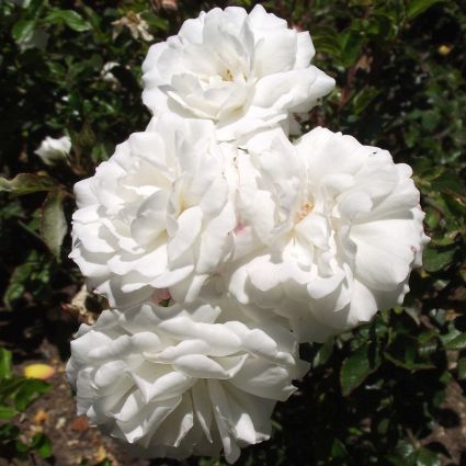 The Rose Pillow Fight produces small white blooms with a honey fragrance. The Pillow Fight shrub rose just explodes into bloom with the white flowers making a startling look against the very deep, glossy, green foliage.