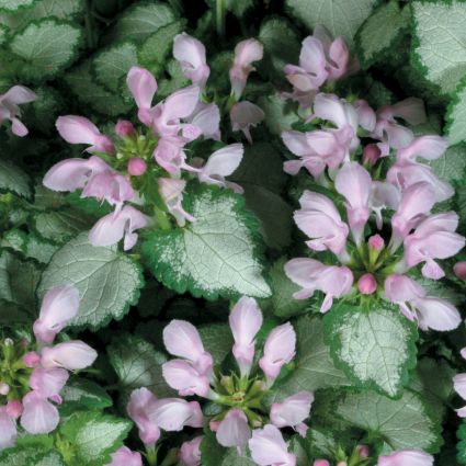 Lamium Pink Chablis, Lamium maculatum ‘Pink Chablis’ PPAF, is a new award winning cultivar which is a frothy confection of silver and green foliage is highlighted by cotton candy pink flowers. Use as a filler in containers for a wonderful foliage accent!