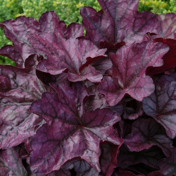 Heuchera Plum Royale(Coral Bell), Heuchera ‘Plum Royale’, has 4” shiny purple leaves that will not fade during the season; even late in the fall ‘Plum Royale’ will be vibrant and colorful!