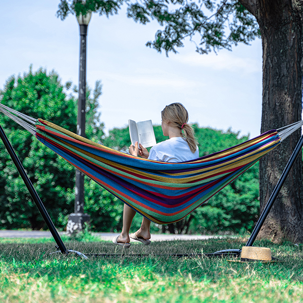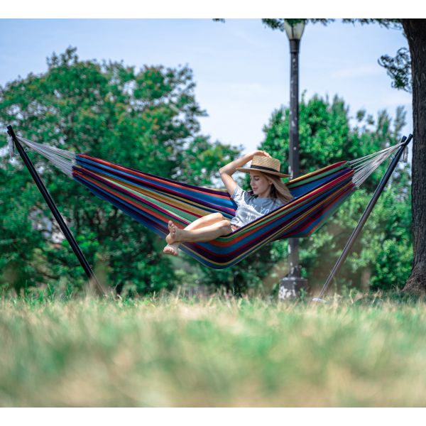 - Our hammock doesn’t need two perfect trees like the others. With our portable stand, you can put yours anywhere you want. We guarantee your easy enjoyment for years to come.