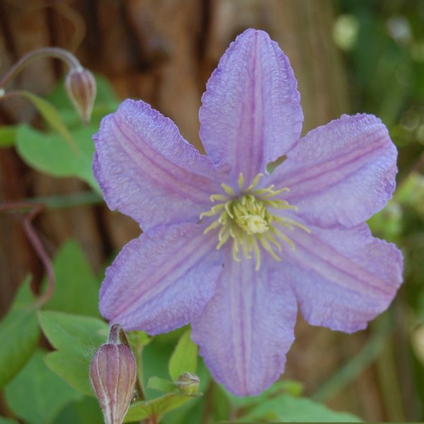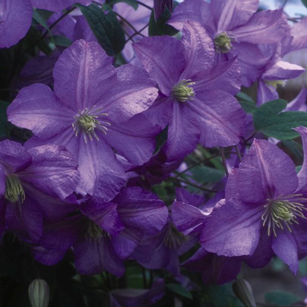 Clematis Prince Charles has incredible flower power! The compact plants bloom profusely for a long time from July through September. The 4″ mauve-blue semi-nodding flowers are deeply ribbed with a slight twisting habit; contrasting yellow anthers.
