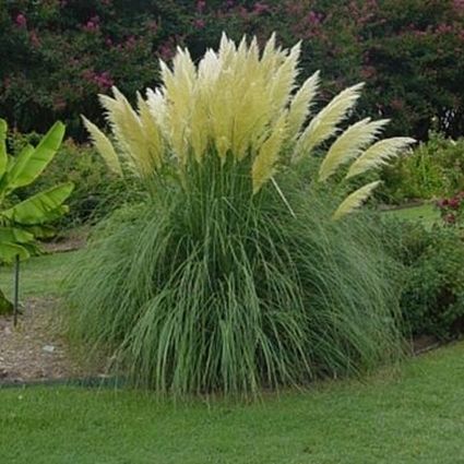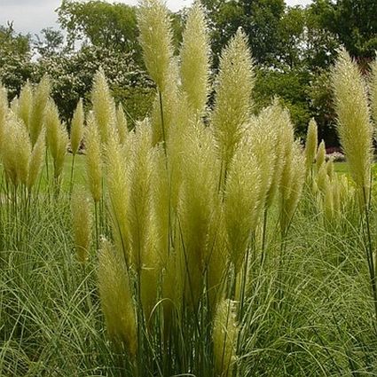 ‘Pumila’ is a dwarf pampas grass with huge, feathery white plumes. The showy, silvery-cream plumes feel silky to the touch and are perfect for use in dried arrangements.