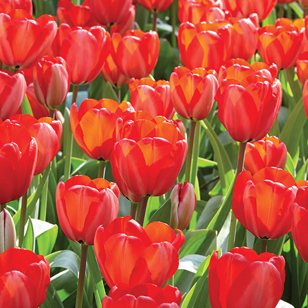 This Early Bird tulip shows its true beauty as a mid-spring bloomer. Create a sea of red with your Red Impression Tulips as a group planting or a single-variety drift. These red beauties also pair well with other tulip varieties in yellow, white, and orange. These towering tulips also make a lovely spring show with daffodils.