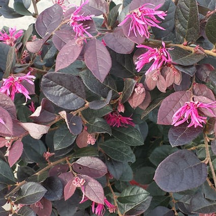 Loropetalum fill a gap in your landscape – they are leafy year round, drought resistant, deer resistant, and tolerate a wide range of garden conditions. On top of all that, they bloom profusely with fuchsia-pink, almost fuzzy flowers starting in early spring.