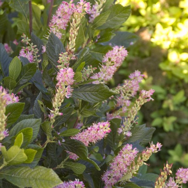 Ruby Spice Summersweet, Clethra alnifolia ‘Ruby Spice’, is a distinctive true pink that ranks supreme! In early to late July and into August, the plant bears vivid pink flower spikes on the current season’s growth.