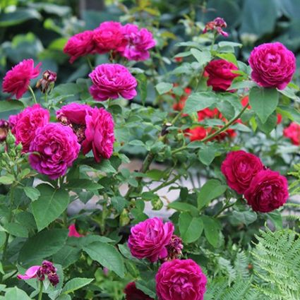 Ruby Voodoo doesn’t just have big color and big scent. It has a big form. Growing to an impressive sized shrub, it commands attention in a sunny spot in your garden. After a big flush of blooms in early summer, it will treat you with sporadic blushes all summer long and into the fall.