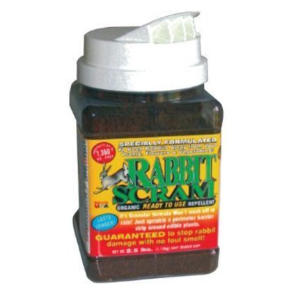 Rabbit Scram rabbit repellent protects your trees, shrubs, plants, and vegetable gardens from hungry rabbits. Rabbit Scram is a granular, organic repellent that is safe and effective, without the offensive odor of most spray products. Because it is not water-soluble, one application out lasts competing products in the marketplace. Application is easy, just sprinkle the granules to create a perimeter barrier around the base of your plants or beds, and it will keep pesky rabbits from foraging through your garden.