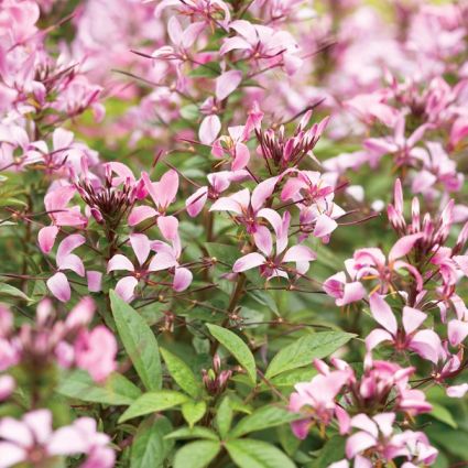 Cleome Senorita Rosalita, Cleome ‘Senorita Rosalita’ PPAF, is a newer cultivar that is very disease resistant but still has the tall beautiful dark green foliage and beautiful pink and white spidery blossoms.