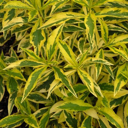 It begins in the spring with brilliant golden-edged foliage that gradually matures to a quieter shade of cream.