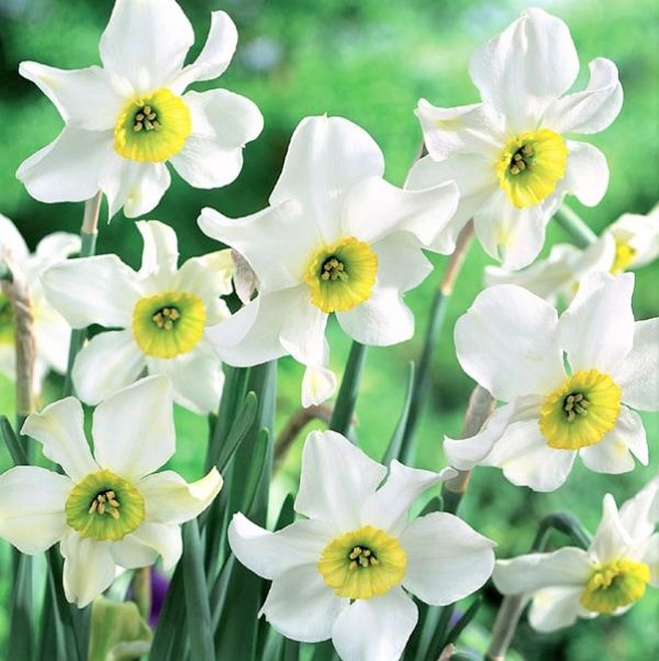 They feature pure white petals surrounding a green and yellow cup in the center. With one flower to a stem, these make great cut flowers.