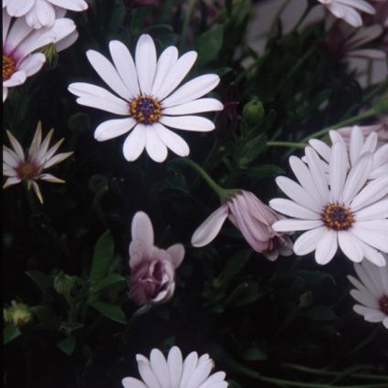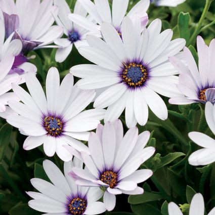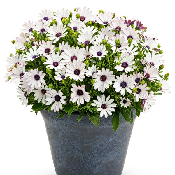 The Daisy Soprano White Improved ‘Osteospermum hybrid’, exhibits slightly cupped Daisies that have terrific heat tolerance and an extra-compact habit.