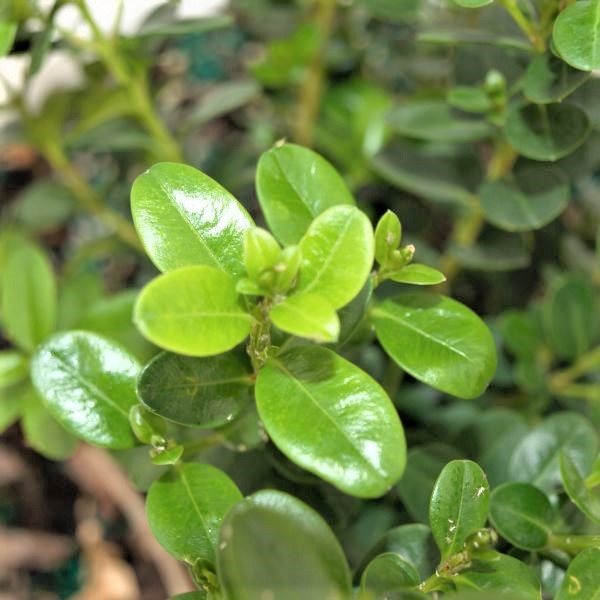 It stays small and rounded, so you won’t need to prune it for size unless you want to. Its vibrant, green foliage is robust and shiny.