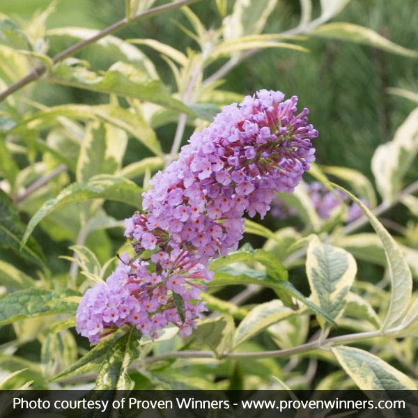 Your Summer Skies features long spikes of clustered lavender-blue flowers that are a show-stopper in summer and last through fall. However, perhaps even more valuable in this Butterfly Bush variety is the variegated foliage that will create an eye-catching image in your garden even when not in bloom.