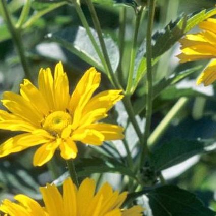 Blooming from July till frost, this Heliopsis grows moderately tall and is an easy to grow perennial attracts butterflies and bees, but is deer resistant.