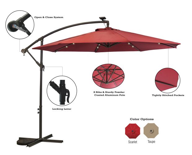 | size | Sun-Ray 10 Feet Round Scarlet Offest Solar Umbrell With Cross Base – Garden Center Item |