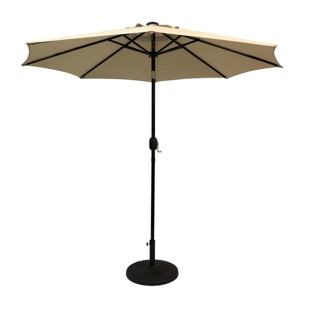 Sun-Ray 9 Feet Round Taupe Solar Lighted Umbrella – Garden Center Item