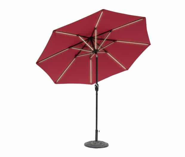 | size | Sun-Ray Scarlet Round Next Gen Solar Lighted Umbrella – Garden Center Item |