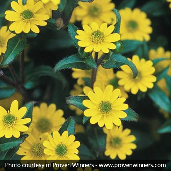 The Sanvitalia Sunbini, Sanvitalia speciosa ‘Sunbini’, is a Proven Winner selection and is a full and lush grower that is more compact than other varieties.