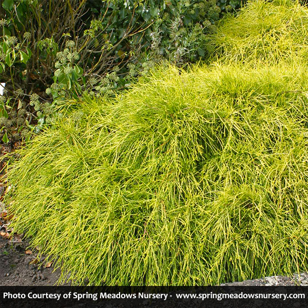 Sungold False Cypress is a rather slow growing shrub that takes on a broad pyramidal shape. Its branches are an absolutely stunning shade of almost lime green!