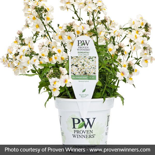 The Nemesia Sunsatia ™ Coconut, ‘Nemesia hybrids’, is a German breakthrough like nothing else on the market. This Proven Winners plant has colors that range from glowing bright hues to the softest pastels.