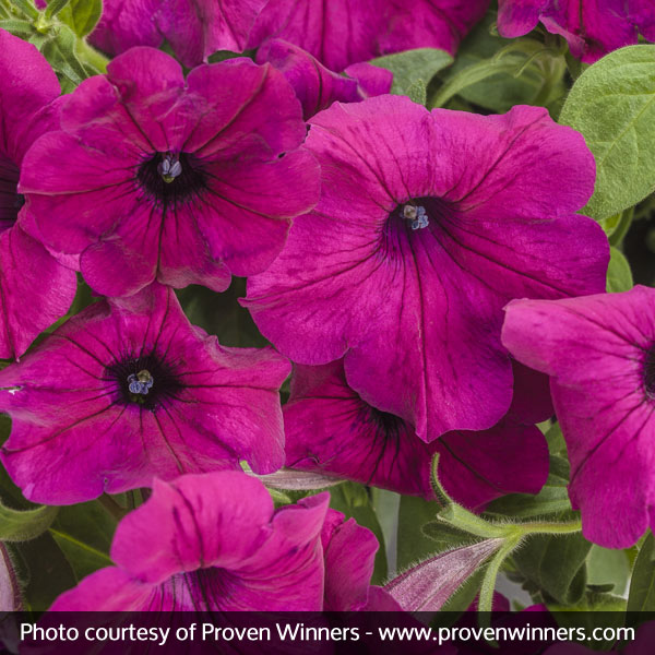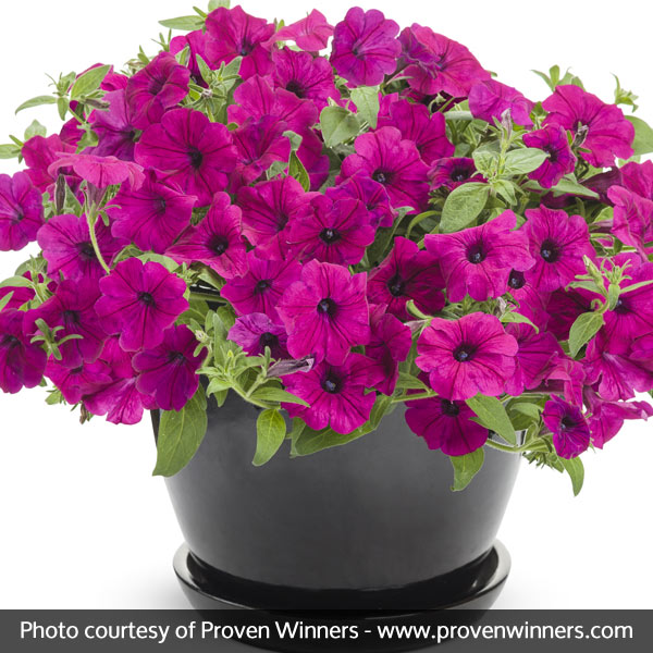 ‘Supertunia® Royal Magenta‘ is perpetually in bloom, deliciously fragrant, and ideal for baskets, beds, balconies and combination plantings.