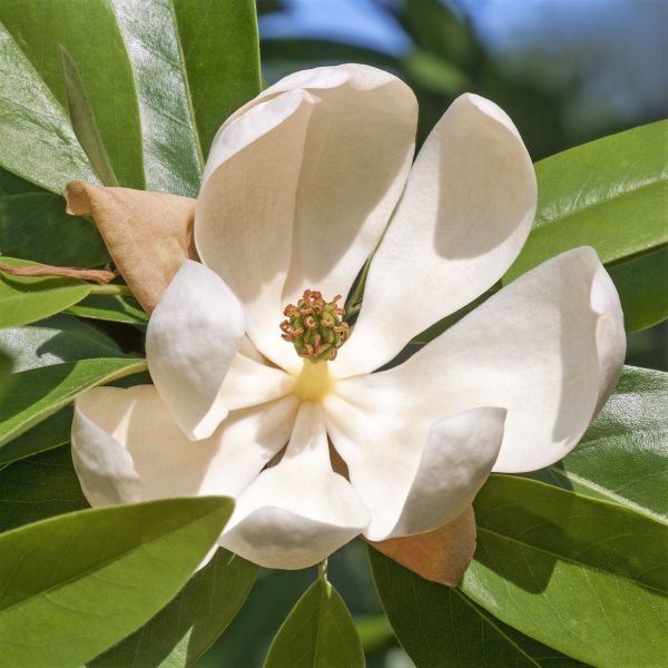 Looking for an elegant tree with airy, open style to use as a specimen in your landscape? Charming native Sweet Bay Magnolia (Magnolia virginiana) has an easy-care nature. This beautiful tree is a wonderful choice for many modern landscape applications.