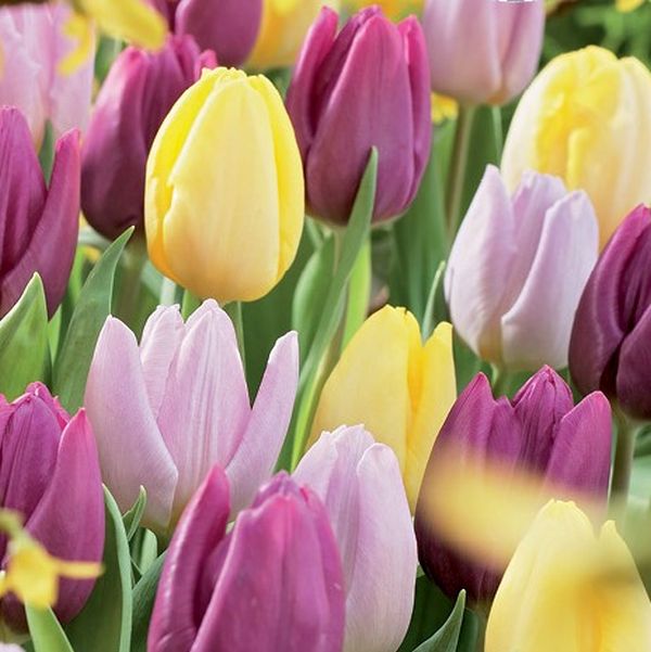 Use this easy, pretty mix when you want to make people happy. A charming blend of the best-of-the-best Prince Tulips, this colorful blend includes Tulipa ‘Sunny Prince’, Tulipa ‘Candy Prince’, Tulipa ‘Purple Prince’.