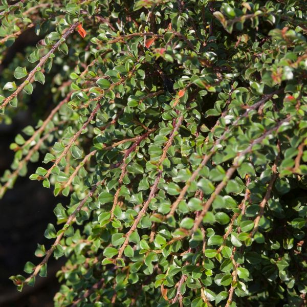 This Cotoneaster spreads by rooting where the branches touch the soil. Its branches are opposite along the stem so creates a herringbone effect or pattern.
