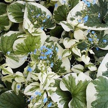 Brunnera Variegata, Brunnera ‘Variegata’, has heart-shaped leaves that are edged in creamy-white for a dramatic contrast in the shade garden.
