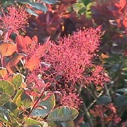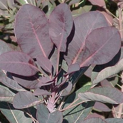 Velvet Cloak Smokebush, Cotinus coggygria ‘Velvet Cloak’, is an upright and spreading form of Smokebush, which maintains it’s dark-purple color extremely well throughout summer, with panicles of smoky-purple to beige flowers blooming in mid-summer. This gives the effect of a cloud of smoke.