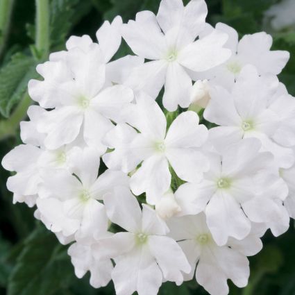Verbena Lanai Blush White, Verbena Lanai® Blush White, has bright white flowers with pale yellow centers. Lanai™ flowers early and is free flowering from tip to crown. The flowers on this Verbena look wonderful and attract butterflies.