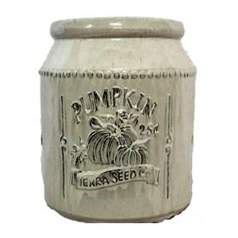Vintage Pottery Cream 11 Inch Pumpkin Seed Packet Planter – Garden Center Item