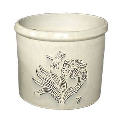 Vintage Pottery Glazed Cream Round 10 Inch Heirloom Dragonfly Crock Planter – Garden Center Item