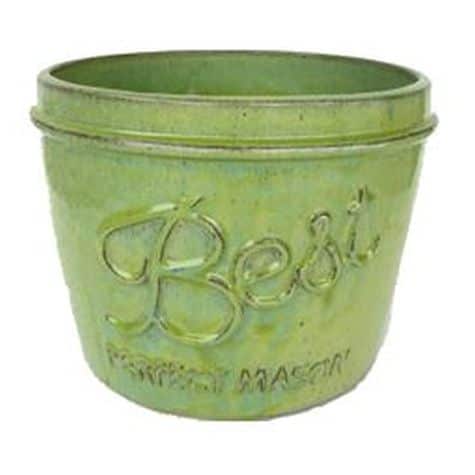 | size | Vintage Pottery Green 11 Inch Low Mason Jar – Garden Center Item |