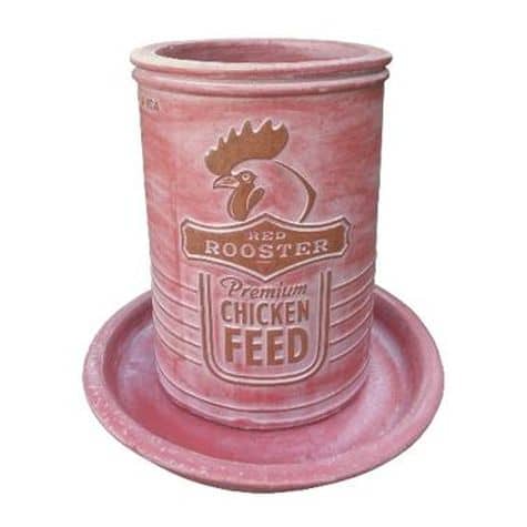 | size | Vintage Pottery Rustic Red 11 Inch Chicken Feeder Planter – Garden Center Item |