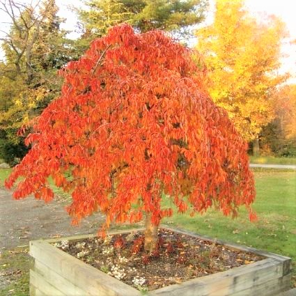 And get ready for fall when the leaves develop spectacular fall display of orange and red. It’s another knockout season for this special variety. What a gift for small yards to have a tree that works so hard in spring, summer and fall for you.