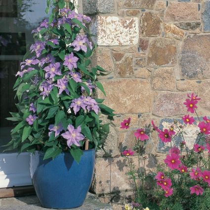 Best performance is when the tops are in full sunlight and the roots are shaded, but will thrive and bloom in shade. Apply generous mulch or a shallow-rooted ground cover near the base of the vine.