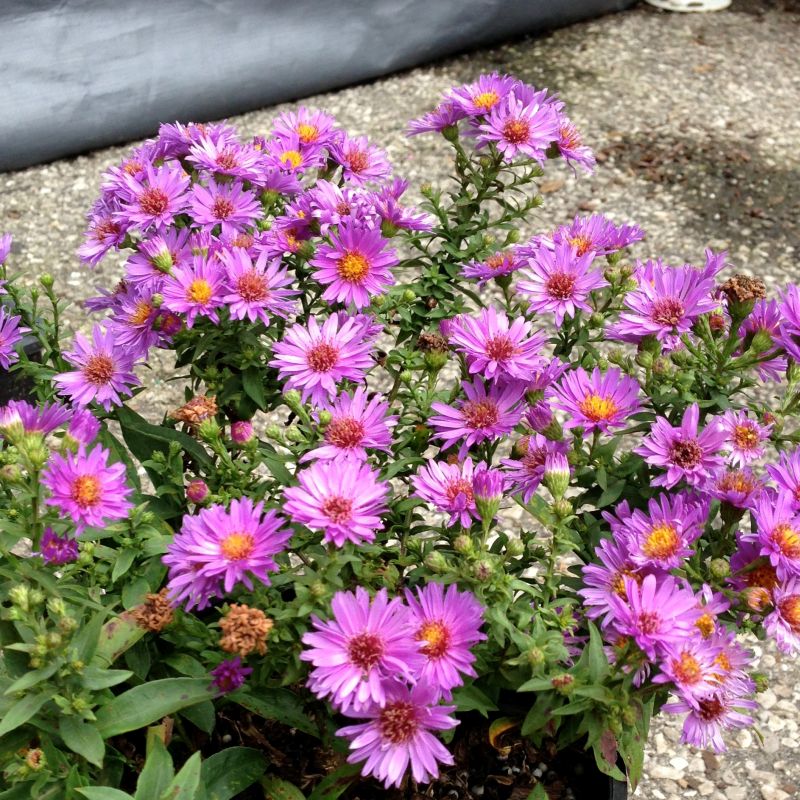 The Woods Pink Aster, Aster x dumosus ‘Woods Pink’, has clear pink flowers with gold centers and daisy-like flowers blooming August through September.