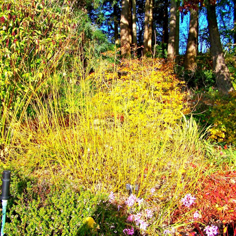 Once the leaves drop for winter, the twigs make a dramatic shift from green to bright yellow. Enjoy that bold, ornamental color against the browns and greys of winter.